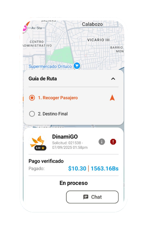 Encuentra y realiza solicitudes de pasajeros basado en tu ubicación en cualquier momento. DinamiGO te acompaña.